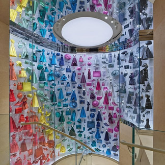 Blending art and retail, the boutique doubles as a gallery, showcasing works from artists like Robert Mapplethorpe, Nir Hod, Jean‑Michel Othoniel, and Jennifer Steinkamp—merging fashion with fine art in a transformative experience.